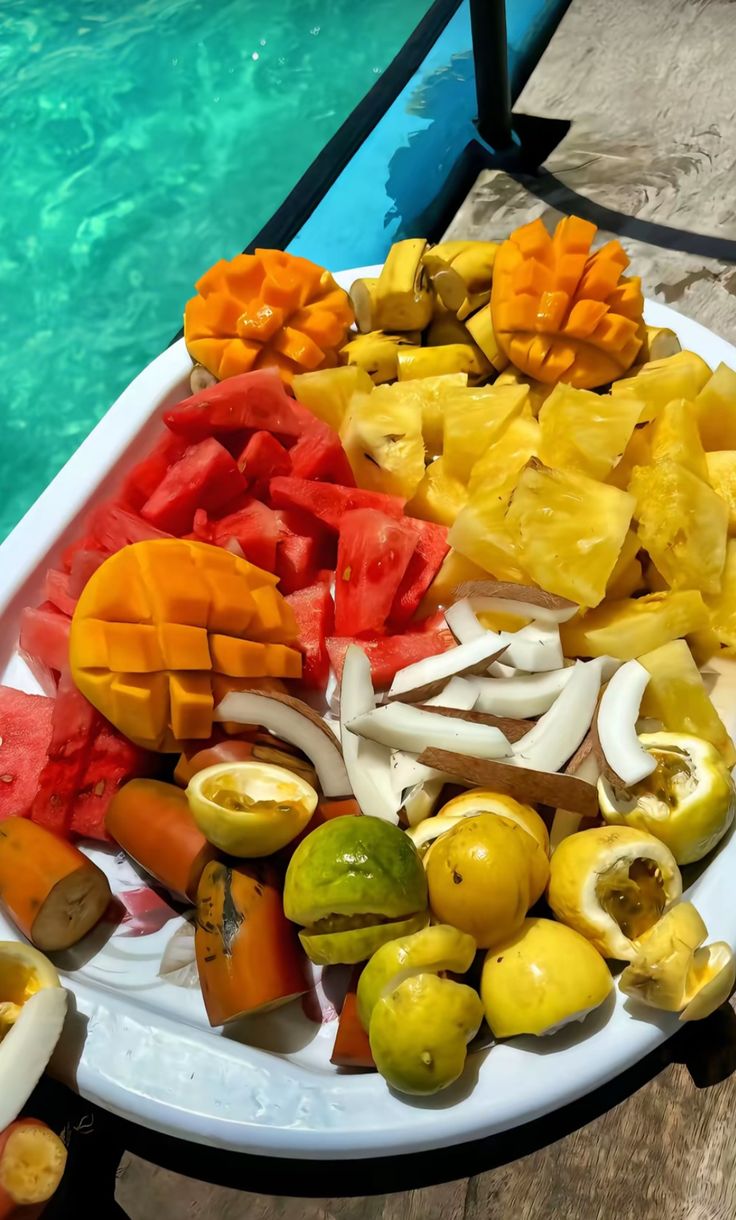 Sitting back in a peaceful tropical setting like a garden or beach while savoring the juicy, sweet fruits you’ve tasted. It’s a calm and refreshing experience that lets you fully appreciate the natural flavors of fruits.